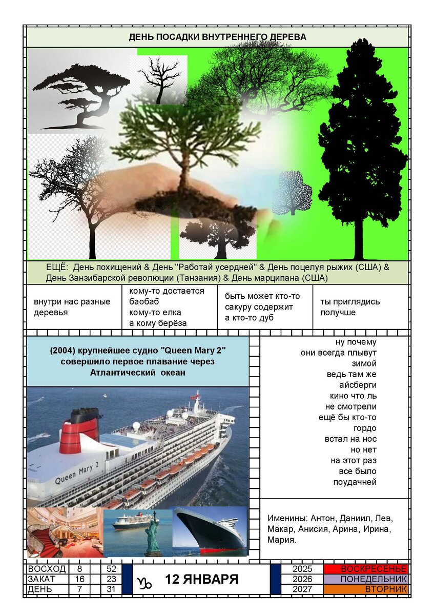 КАЛЕНДАРЬ 12 ЯНВАРЯ