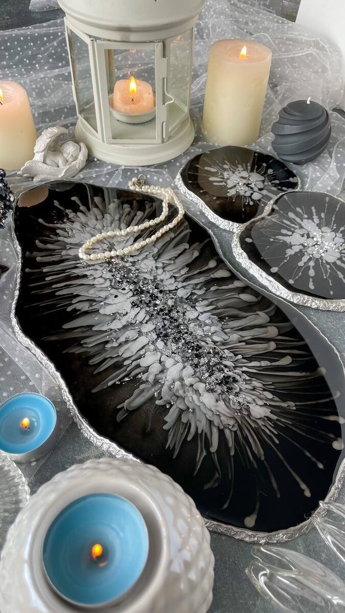 Работаем с густой смолой и создаём объёмный рисунок с ореолом и прожилками ✨