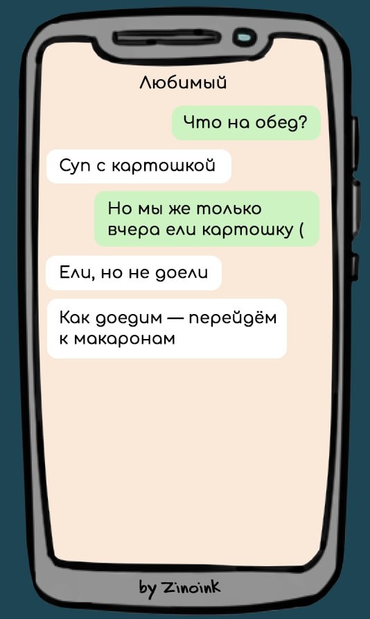 Как известно, лучший комплимент для хозяйки – это пустая тарелка, довольный вздох и искреннее: «Ой, а можно ещё чуть-чуть?». После этих слов любая катастрофа с пригоревшим соусом моментально превращается в пустяк. Потому что это и есть высшая награда – накормить и увидеть счастье. Но иногда женщин утомляет труд на кухне... и им просто необходима кулинарная передышка! Сегодня я собрал 9 смешных переписок с женой, в которых она устала готовить и всех кормить. Уверен, они тебе понравятся. Приятного чтения и отличного настроения! Женская магия: из трёх яиц, половинки луковицы и вчерашней гречки она создаёт кулинарный шедевр под названием «О, я просто так, мелочь на скорую руку». Мужчине остаётся лишь есть этот шедевр с большим аппетитом и главное – растягивать удовольствие). Мужчины, которые долго находятся в браке знают, что лучший комплимент для женщины – не «ты прекрасно выглядишь», а тихое «ммм…» и немедленно потянувшаяся за добавкой рука). Кажется, герою следующей переписки ещё нужно