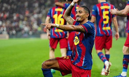 В Джидде (Саудовская Аравия) состоялся финал Суперкубка Испании-2026, в котором «Барселона» играла с «Реалом», сообщает Sports.kz. «Барселона» одержала победу со счетом 3:2. На 36-й минуте Рафинья вывел «Барселону» вперед. На 45+2 Винисиус Жуниор помог «Реалу» отыграться. После этого команды успели забить еще по одному голу в компенсированное время: на 45+4 минуте у «Барселоны» отличился Роберт Левандовски, а за «Реал» забил Гонсало Гарсия (45+6). На 73-й минуте Рафинья сделал дубль. На 90+1 минуте у «Барселоны» красную карточку получил Френки Де Йонг. RAPHINHA GOLAZO! Barcelona 1-0 Real Madrid!#FCBarcelona #Supercopa pic.twitter.com/QLHKeK1bSe — Futbol Mundial (@futbolmundialsp) January 11, 2026 pic.twitter.com/DHNQO9ZSlH — browliami (@browliami46853) January 11, 2026 pic.twitter.com/c0aMDHmdhp — ↪️ @CenterOfGoals - Follow (@CiaraImpey81585) January 11, 2026 pic.twitter.com/qcCGxzI9nd — browliami (@browliami46853) January 11, 2026 pic.twitter.com/y5ElUWR2DC — browliami (@browliami4685