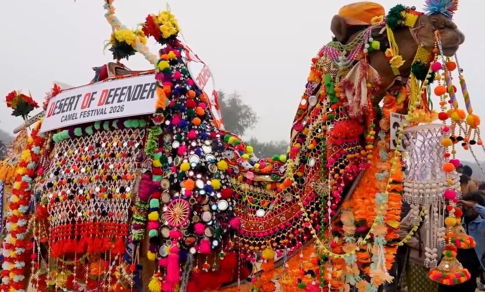 Верблюды покорили публику нарядным видом и трюками на фестивале в индийском Биканере