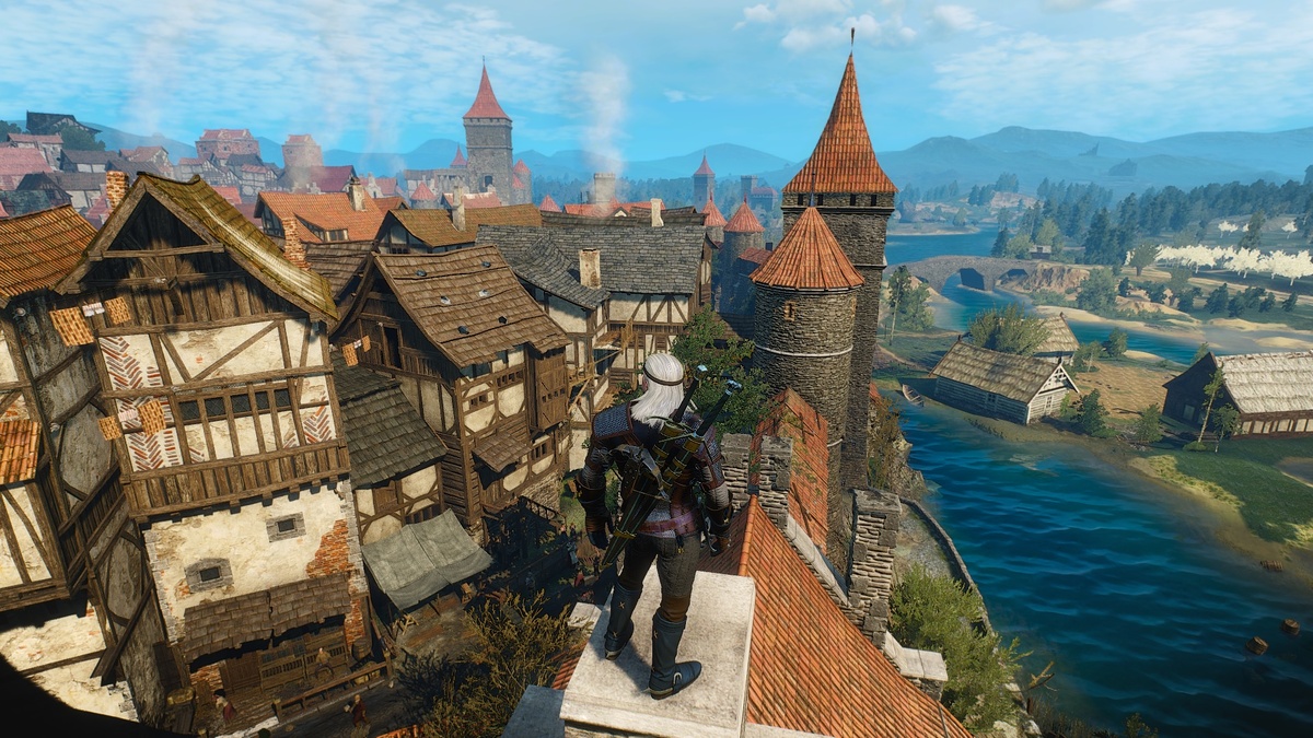 Приветствую всех любителей Мира Ведьмака! С предыдущими публикациями можно ознакомиться в подборке «Технопарк и фантазии». ******* «... Я – Кот, гуляю один, и все места для меня одинаковы...» Редьярд Джозеф Киплинг Продолжаем начатые в конце прошлого года похождения новиградского кота. (Внимание! Прежде чем приступать к дальнейшим тренировкам, рекомендую установить мод «No Fall Damage» для версии 1.31 или (для версии Next Gen), нивелирующий урон от падения с высоты. Не все любят пользоваться модами, но в данном случае некоторые прыжки с высоты могут стать для Геральта фатальными). Следующий участок стены выглядит очень привлекательно: наличие четырёх лестничных маршей предполагает неплохую возможность для проникновения на стену. Но, увы, забраться на её кровлю невозможно ни с земли, ни с крыши ближайших строений. Что же, нет так нет. Прямой отрезок, расположенный рядом с территорией казармы Охотников за колдуньями (в данном случае уже сгоревшей), так же недоступен, как и сама территор