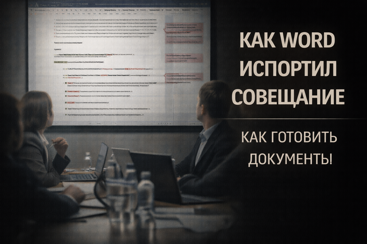 Как Word испортил совещание. Реальная история о том, как плохо подготовленный Word-документ сорвал совещание и почему это происходит снова и снова. Чек-лист «Как готовить документы» ВСЁ НАЧИНАЛОСЬ НОРМАЛЬНО. Повестка есть. Люди собрались. Экран включили. — «Давайте откроем документ». И дальше пошло не по плану. КАК ВЫГЛЯДЕЛ ЭТОТ WORD Никто не читал содержание. Все смотрели на хаос. ПОЧЕМУ СОВЕЩАНИЕ ЛОМАЕТСЯ. Потому что Word — это носитель мысли. Если документ: он сразу рушит доверие. Даже к хорошим идеям. ЧТО ПРОИСХОДИТ ДАЛЬШЕ. Вместо обсуждения сути: