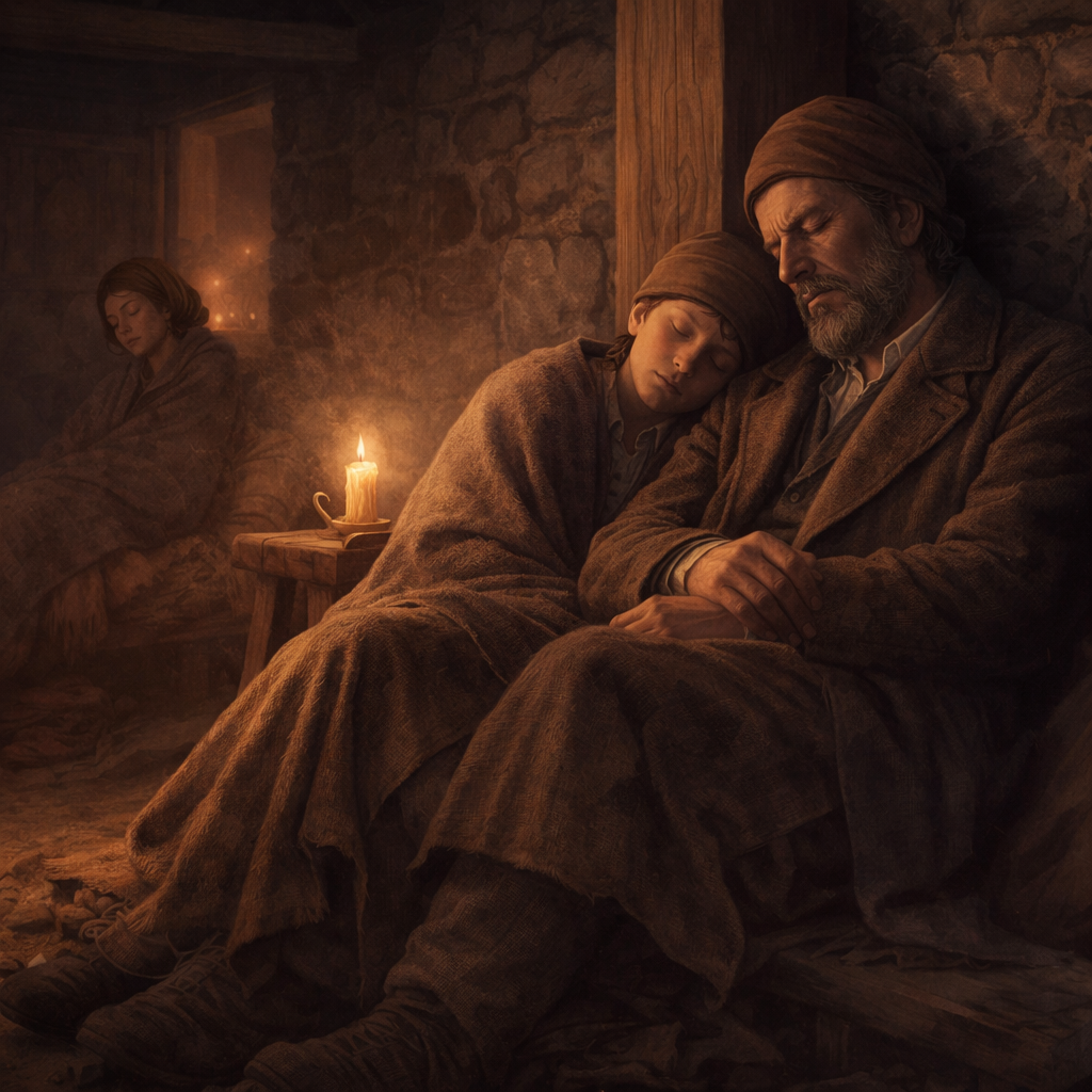 ночь, темно, холод пробирает сквозь щели в стенах. И люди спят… сидя. Да, именно сидя, а не на кровати или на полу.