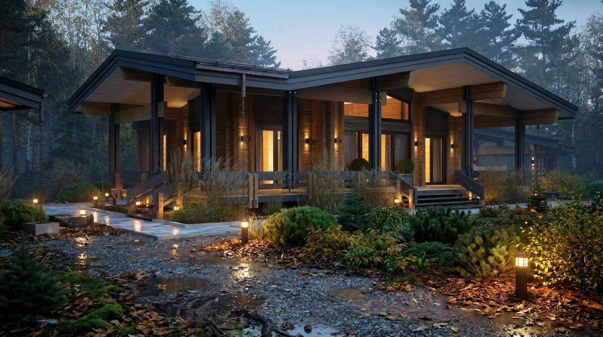 ! Одноэтажный проект из клеёного бруса под ключ: тепло, уютно, экологично. Идеальное сочетание современного дизайна и натуральных материалов — для тех, кто ценит качество и гармонию с природой. 📍Реализуем «под ключ» — от эскиза до заселения. ✨ Готовы воплотить ваш идеальный дом? Пишите в Direct! #домизбруса #клееныйбрус #проектированиедома #доммечты #экостиль #архитектура #Катан