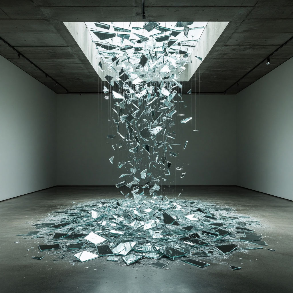 Я нашёл эту галерею случайно — за поворотом переулка, где раньше была пустая стена. Вывеска мерцала, словно сотканная из ртути: «Вход — воспоминание. Выход — не гарантирован». Внутри не было стен. Только зеркала — сотни, тысячи зеркал, растущих из пола, свисающих с потолка, плавающих в воздухе. Они не отражали меня. В каждом — чужой мир. В одном зеркале тёк кроваво‑красный дождь над городом без людей. В другом — дети с глазами‑пуговицами водили хоровод вокруг дерева, увешанного часами. В третьем — моя квартира, но там сидел кто‑то за моим столом и листал мой дневник. Я шагнул ближе. Зеркало подалось, как поверхность воды. Прежде чем я успел отпрянуть, чья‑то рука схватила меня за запястье. — Ты уже здесь, — прошептал голос, которого не было в комнате. Я попытался вырваться, но зеркала вокруг начали меняться. Теперь все они показывали одно и то же: меня, стоящего в этой галерее, но с каждым отражением я становился… другим. В первом — глаза потемнели до чернильного цвета. Во втором — ко