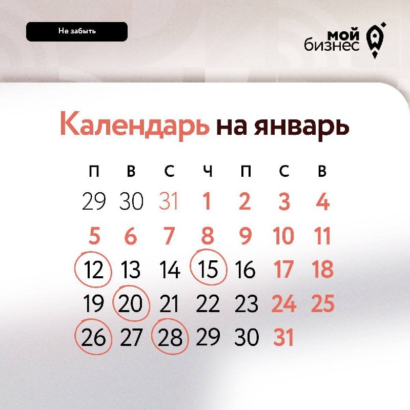 ❓ Главное событие 2026 года для бизнеса — налоговая реформа. Уже в январе вступит в силу ряд изменений: 🔹основная ставка НДС повысится до 22% 🔹лимит дохода НДС на УСН снизится до 20 млн рублей 🔹лимит, позволяющий применять ПСН снизится до 20 млн рублей 🔹перечень расходов на УСН станет открытым 📌Календарь предпринимателя поможет начать год с пониманием главных дедлайнов: сроков предоставления отчетности и дат уплаты налогов. Найти его можно на нашем портале. #Мойбизнес_оважном
