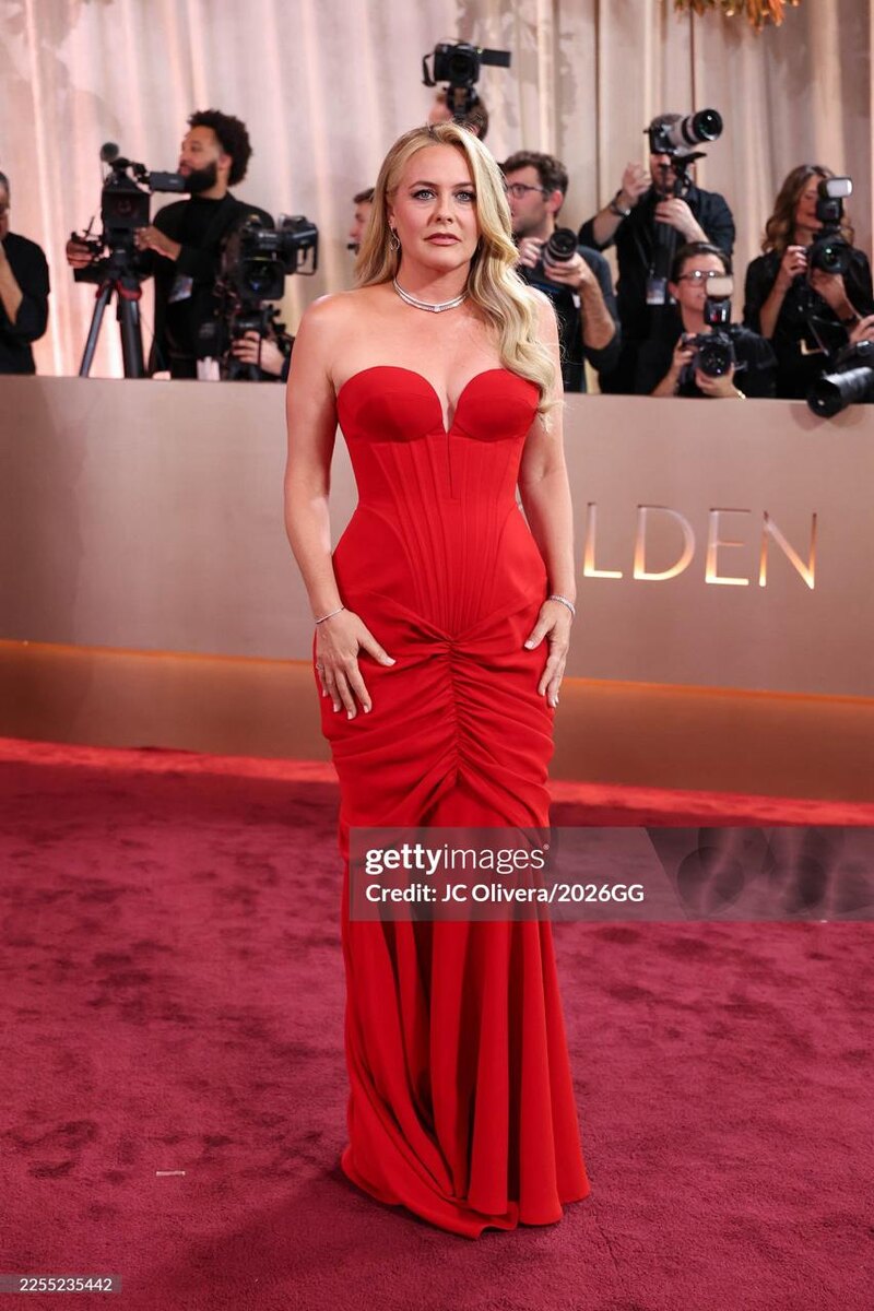 Алисия Сильверстоун пришла как часть команды "Бугонии", номинированной на лучшую комедию.