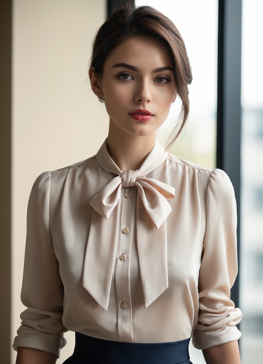 Блузка с бантом на шее - универсальный элемент гардероба, который легко адаптируется под различные события. Для делового облика выбирайте модели из легких тканей нейтральных тонов. Сочетайте их с классическими брюками или юбками-карандашами - это создаст строгий, но при этом стильный образ. Аксессуары должны быть аккуратными: минималистичные серьги и простая сумка завершат образ, не отвлекая внимание от блузки.
