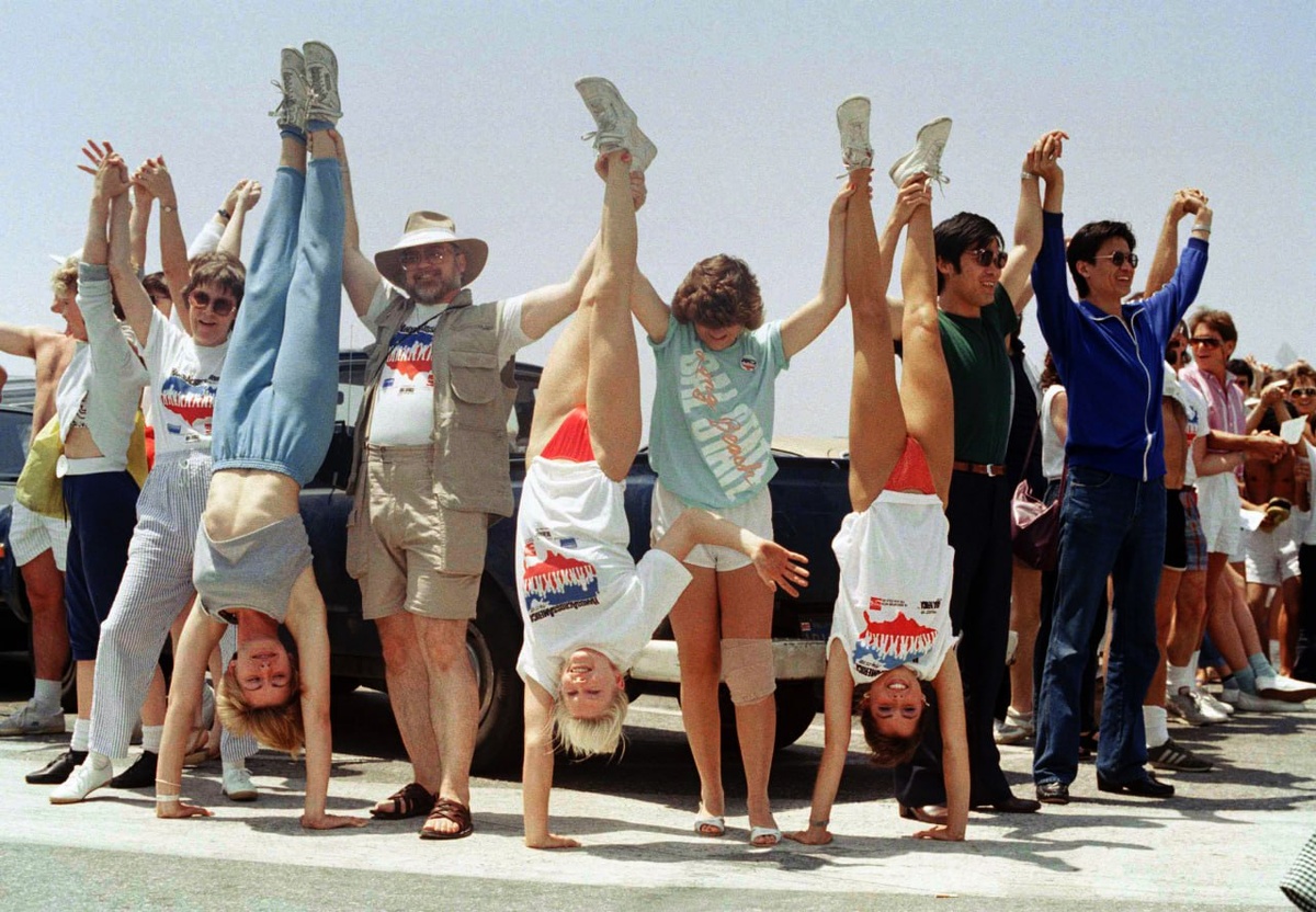 Она получила название Hands Across America. В течение пятнадцати минут около пяти миллионов человек — цифра подтверждена официальными источниками — взялись за руки, пытаясь создать непрерывную цепь от Бэттери‑парка в Нью‑Йорке до Лонг‑Бич в Калифорнии. Маршрут проходил через шестнадцать штатов и примерно пятьсот пятьдесят городов. Общая протяжённость линии составляла около четырёх тысяч миль. В городах цепь была плотной, а в сельских и пустынных районах её приходилось «дотягивать» лентами и верёвками — этот факт упоминается в хрониках события. Несмотря на разрывы, визуальный эффект оставался тем же: страна, переживавшая политические и социальные разломы, на короткое время становилась единой. Каждого участника просили внести десять долларов, чтобы занять своё место в цепи. Крупные корпорации добавили около восьми миллионов спонсорских средств. Первоначальная цель — собрать шестьдесят миллионов — достигнута не была. Всего удалось собрать около тридцати четырёх миллионов, из которых приме