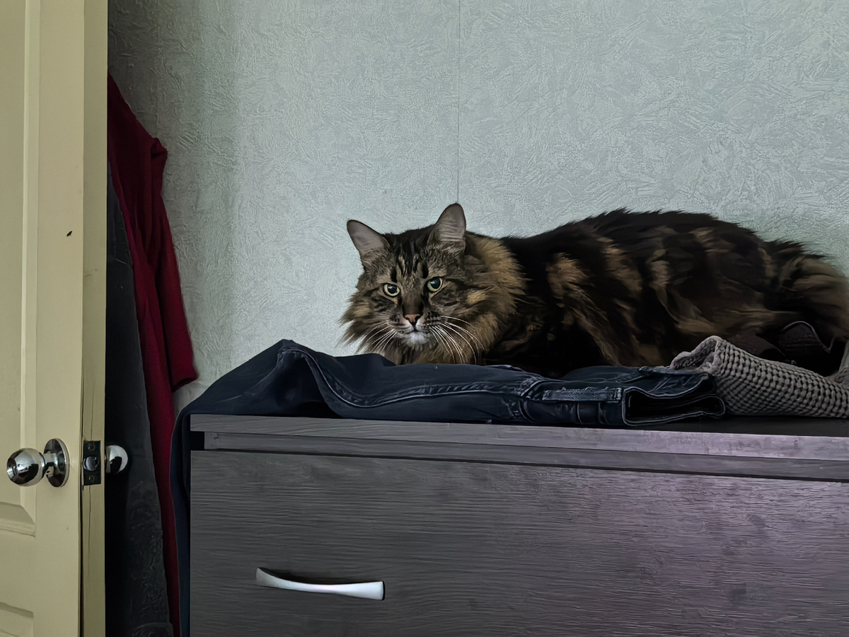 После этого хозяин лёг и взял меня к себе на ручки, я ему помурчал. Классно полежали, а позже перебрался к себе на диван.