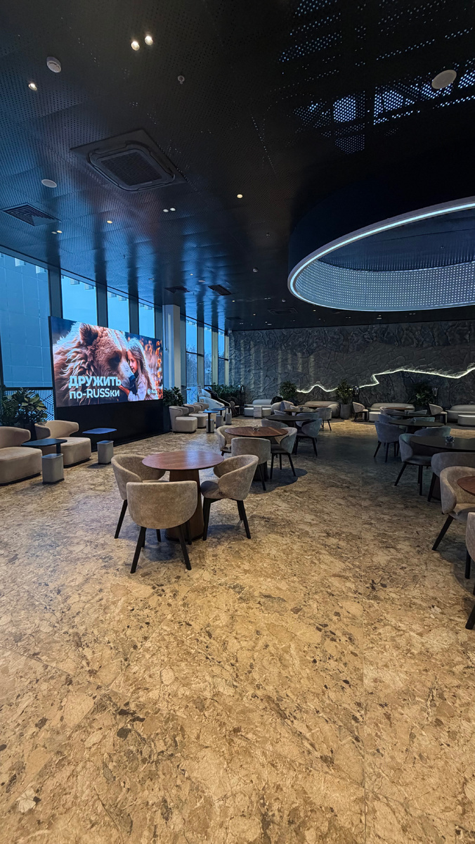 Речь о бизнес-зале в терминале внутренних авиалиний. Находится в самом конце чистой зоны, у выхода на посадку. По сравнению со старым, этот просто лучший. Главный плюс - большое, современное пространство, где никто друг другу не мешает. Раньше помещение было в несколько раз меньше и уж точно не напоминало бизнес-зал. На входе встречают вежливые сотрудники. Проходить можно пассажирам как по банковским программам, так и тем, кто летит бизнес-классом. Ну и покупать посещения тоже можно, конечно, но зачем? Зал разделен на две части. В целом, друг от друга они сильно не отличаются. В зале несколько табло с информацией о вылетающих и прилетающих рейсах, плюс объявления. Пропустить посадку сложно.