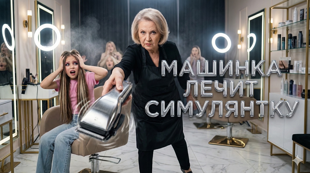— Кровь прилила к голове! — вдохновенно врала Елена, надвигаясь на внучку с жужжащей машинкой. — Видите, как лицо покраснело? Мозг сейчас вскипит! Тепловой удар из-за волос! Слишком густые, создают парниковую подушку! Срочно нужно охлаждение, иначе инсульт и паралич!