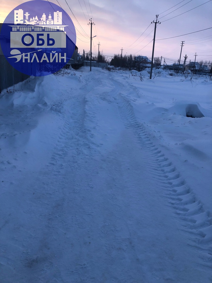 ↗ Чищено - сугробы по колено - чищено - сугробы по колено. И это все одна тропинка.