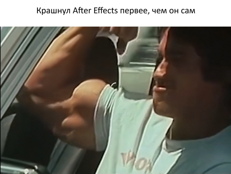 Ключевая особенность продвигаемого мема заключается в его мгновенной считываемости и узнаваемости профессиональной ситуации. Изображение не требует длительного контекста или дополнительных пояснений - зритель сразу улавливает ироничный посыл и эмоциональное состояние, связанное с внезапным сбоем в работе программы After Effects. Сочетание уверенного визуального образа и лаконичной текстовой формулировки позволяет мгновенно установить связь между изображением и личным опытом пользователя. Особенно важным данный аспект становится для платформ с быстрым потреблением контента, таких как Яндекс Дзен, где решение о взаимодействии с публикацией принимается за доли секунды. Мем в данном случае выполняет функцию визуального «якоря», который останавливает прокрутку ленты и привлекает внимание за счёт контраста между спокойным внешним образом персонажа и подразумеваемой технической проблемой.