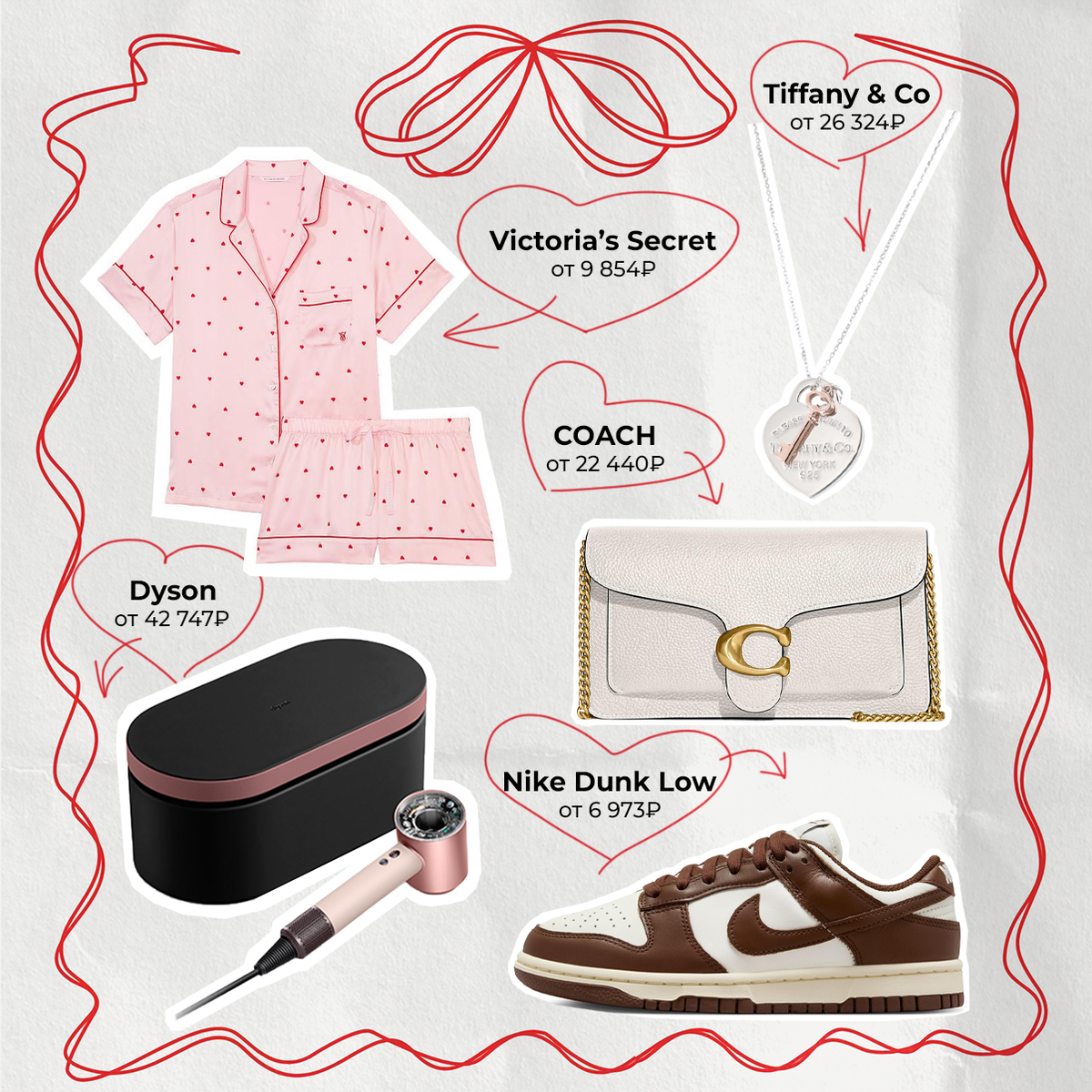 Парни, вы с этим делом не тяните — цветами и шоколадкой не отделаетесь. Собрали то, что порадует каждую, берите на вооружение. Девочки, пост можно отправить в качестве намека. Dyson, цена от 42 747₽* Tiffany & Co, цена от 26 324₽* Nike Dunk Low, цена от 6 973₽* Victoria’s Secret, цена от 9 854₽* COACH, цена от 22 440₽* *стоимость может изменяться в зависимости от курса и размера Больше интересного на нашем сайте POIZON