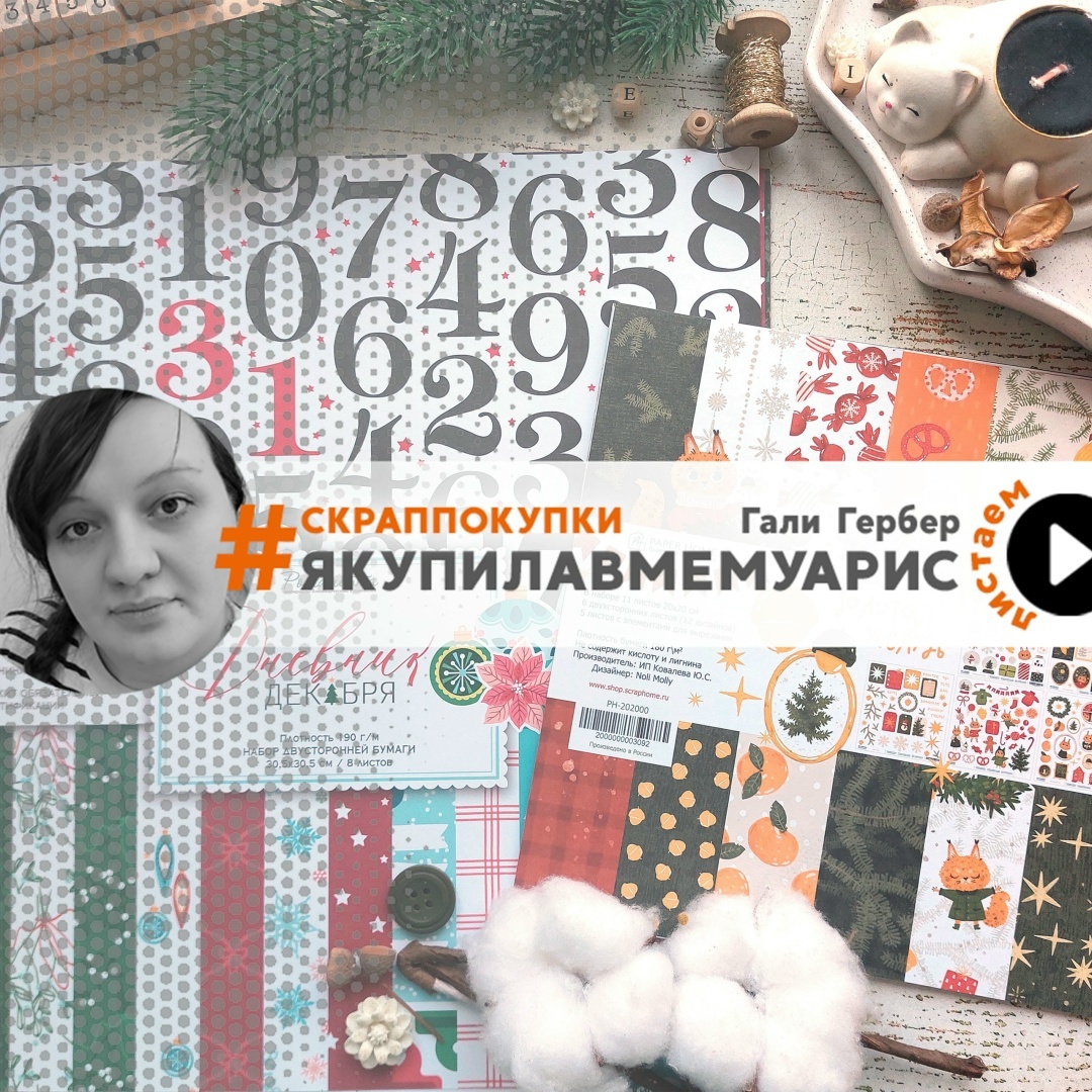 Всегда интересно что же покупают для себя скрап-мастера. Как хорошо, что дизайн-команда Мемуарис готова с радостью делиться своими покупками. Давайте заглянем в один из оранжевых пакетиков, в котором было много любопытных вещиц для скрапбукинга. Всем привет! С вами Галя. Сегодня буду хвастаться своими зимними покупками из магазина Мемуарис. Сам обзор чуть ранее вышел на нашем канале. Ко мне приехали две зимние новинки: «Дневник декабря» от Ромалетта и «Золотой Жёлудь» от Paper home. Обязательно чуть позже их полистаем. А начать хочу с нового продукта от Paperrus. На моём столе набор триклеек «Номерной Фонд» Модерн Матовый Чёрный и Глянцевый Красный. Чудесная находка для декабрьских дневников, уже в продаже. Коллекция «Дневник декабря» от Ромалетта порадовала приятными цветами и дизайнами. Прекрасны как фоновые листы, так и активные принты. Ни сантиметра бумаги не пропадёт. На технической полосе размещаются интересные надписи на русском языке. Отдельное спасибо производителю за карточки