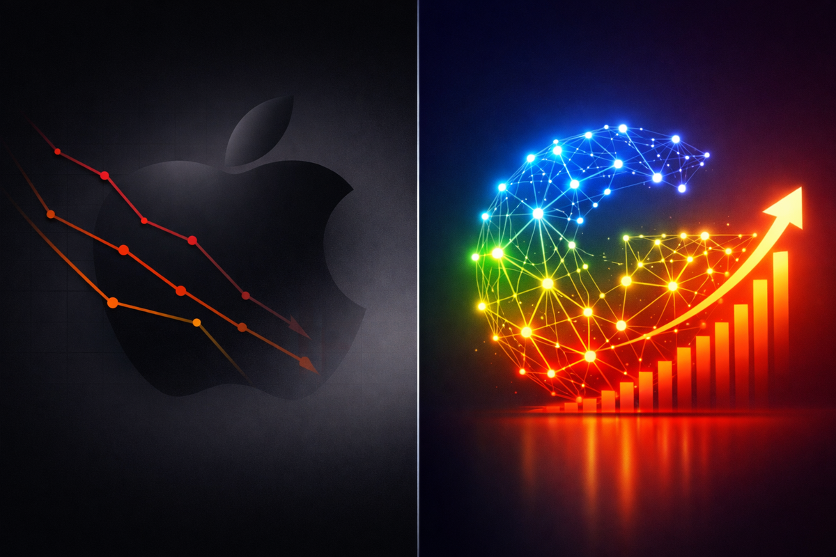 Рубрика: Деньги в IT На этой неделе произошло то, чего не случалось с 2019 года: Alphabet (материнская компания Google) обошла Apple по рыночной капитализации. $3,89 трлн против $3,85 трлн — разница символическая, но для индустрии это землетрясение. 8 января 2026 года акции Alphabet выросли на 2,4%, а Apple продолжила падение — шесть торговых дней подряд, минус 5% и почти $200 млрд капитализации. К четвергу разрыв увеличился: Google вышел на $3,94 трлн, Apple просел до $3,80 трлн. Это первый случай с января 2019 года, когда Google стоит дороже Apple. Лидером остаётся Nvidia с её $4,5 трлн — но ещё два года назад никто бы не поверил, что производитель видеокарт обгонит обе компании. Alphabet стал лучшей акцией среди «великолепной семёрки» в 2025 году: плюс 65%. Для сравнения, Apple прибавила всего 9% — это хуже индекса S&P 500. Смена лидера — не просто биржевая случайность. Это сигнал о том, куда смотрят инвесторы. Google последние полтора года методично восстанавливал репутацию после т