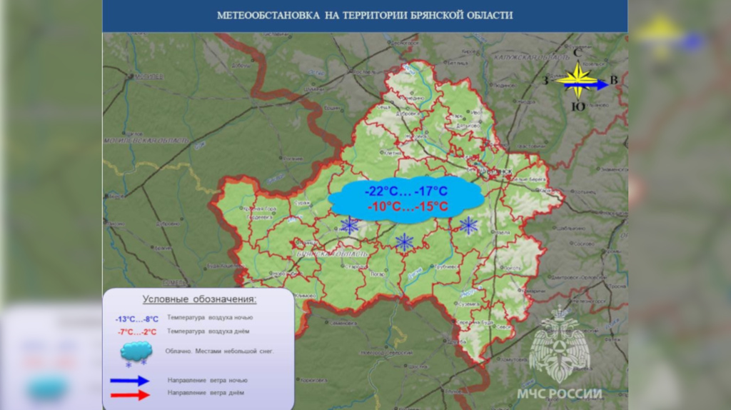 Синоптики предупредили жителей Брянской области, что в ночь на понедельник 12 января в регионе похолодает до - 22 градусов. В областном центре этот прогноз, по всей видимости, не сбылся. Накануне Брянский гидрометеоцентр выпустил пугающий прогноз погоды на первый рабочий день в новом году. Ночью синоптики прогнозировали местами по области мороз до минус 22 градусов. Минимальное значение – минус 17 градусов. Днем 12 января морозы немного ослабнут. Столбик термометра выше отметки в -10 градусов не поднимется. В первый рабочий день нового года на территории Брянской области ожидается облачная погода. Днем возможны прояснения, и солнце покажется из-за облаков. Сильные снегопады на время отступили. Местами в регионе пройдет небольшой снег. Ветер будет дуть с запада со скоростью 8-13 метров в секунду. Ранее сообщалось, что в Брянской области отменён «жёлтый» уровень погодной опасности, который действовал на протяжении нескольких недель из-за сложных метеорологических условий. Теперь регион н