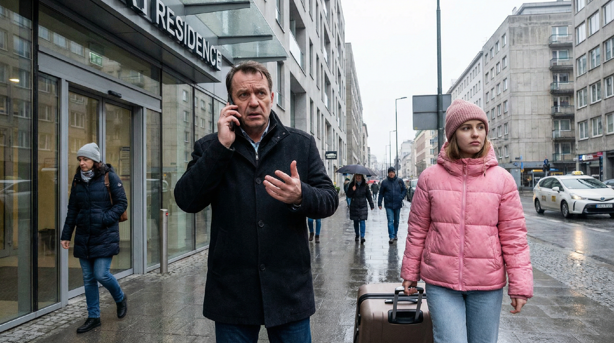 Марина подошла к окну и выглянула во двор. Глеб стоял у подъезда не один. Рядом — девушка в ярко-розовой куртке с огромным чемоданом. Лицо незнакомое, но всё и так было понятно.