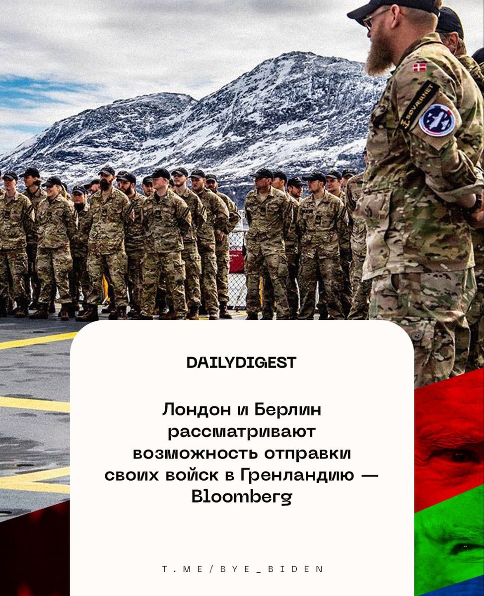 : 🔹Лондон и Берлин рассматривают возможность отправки своих войск в Гренландию — Bloomberg. 🔹Выделение Украине €800 млрд приведет Европу к экономическому краху, заявил Орбан. 🔹Трамп опубликовал скриншот, где указано, что он якобы и. о. президента Венесуэлы с января 2026 года. 🔹Тысячи человек в Нью-Йорке вышли на протест против политики администрации Трампа. 🔹Сирия проявляет желание возобновить работу Русского дома в стране, заявил глава Россотрудничества Примаков. 👍«БайБайден» в МАХ