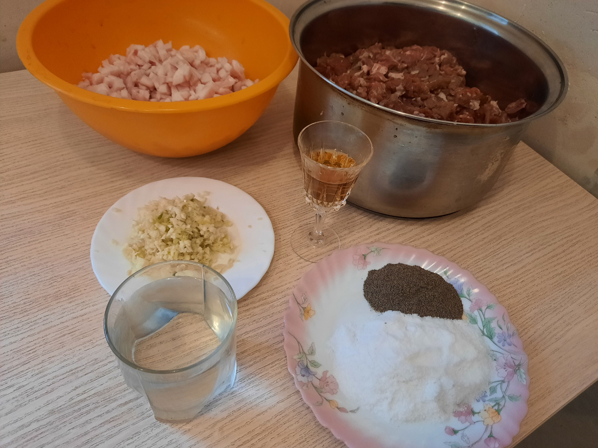 Перед формированием колбасы, оболочку промыть от соли, можно вымочить 20-30минут.