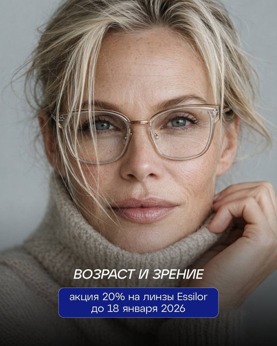 Глаза — наш самый ценный инструмент, и с возрастом они тоже меняются. Чтобы сохранить зрение ясным и комфортным, важно заботиться о глазах вовремя. 🔹 После 30 лет Многие замечают усталость глаз после работы за компьютером или чтения. 🔹 После 40 лет Начинает проявляться пресбиопия — трудности с чтением текста вблизи. Очки для чтения или линзы с постепенной коррекцией помогут видеть чётко на любом расстоянии. 🔹 После 50 лет Повышается риск катаракты и других возрастных изменений. Регулярные осмотры у офтальмолога — лучший способ выявить проблемы на ранней стадии и сохранить зрение. Совет от GLAZBURG: не откладывайте проверку зрения. Правильно подобранные линзы и своевременная диагностика помогают поддерживать комфорт и качество жизни на любом этапе. До 18 января 2026 получите 20% скидку на линзы Essilor отличный повод обновить очки и позаботиться о глазах! Для записи на диагностику пишите нам @glazburg_bot, а больше информации на нашем сайте 📲 #акция