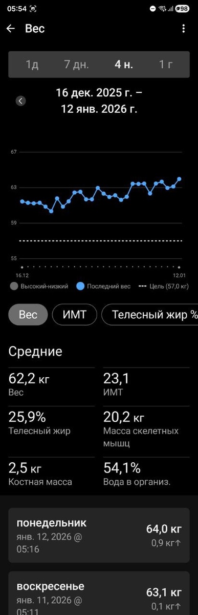 Холод, отеки. Все, хватит. 1800ккал. 113г белка. Ну да, хотела с февраля, но... потеплее одеваться буду. Я понимаю, что отеки никуда не денутся до тепла, понимаю, что энергии станет меньше, понимаю, что в дефиците стану слабее. Что буду терять мышцы, но надеюсь, что достаточное кол-во белка и силовые их сберегут. Постараюсь балансировать и не пережирать жиры и, что для меня самое сложное - белки, чтобы не терять силу. До и после тренировок, буду стараться белки и углеводы есть, чтобы не мешать тренировкам и восстановлению. Посмотрим. Может холода закончатся раньше, чем я начну замедляется 😇