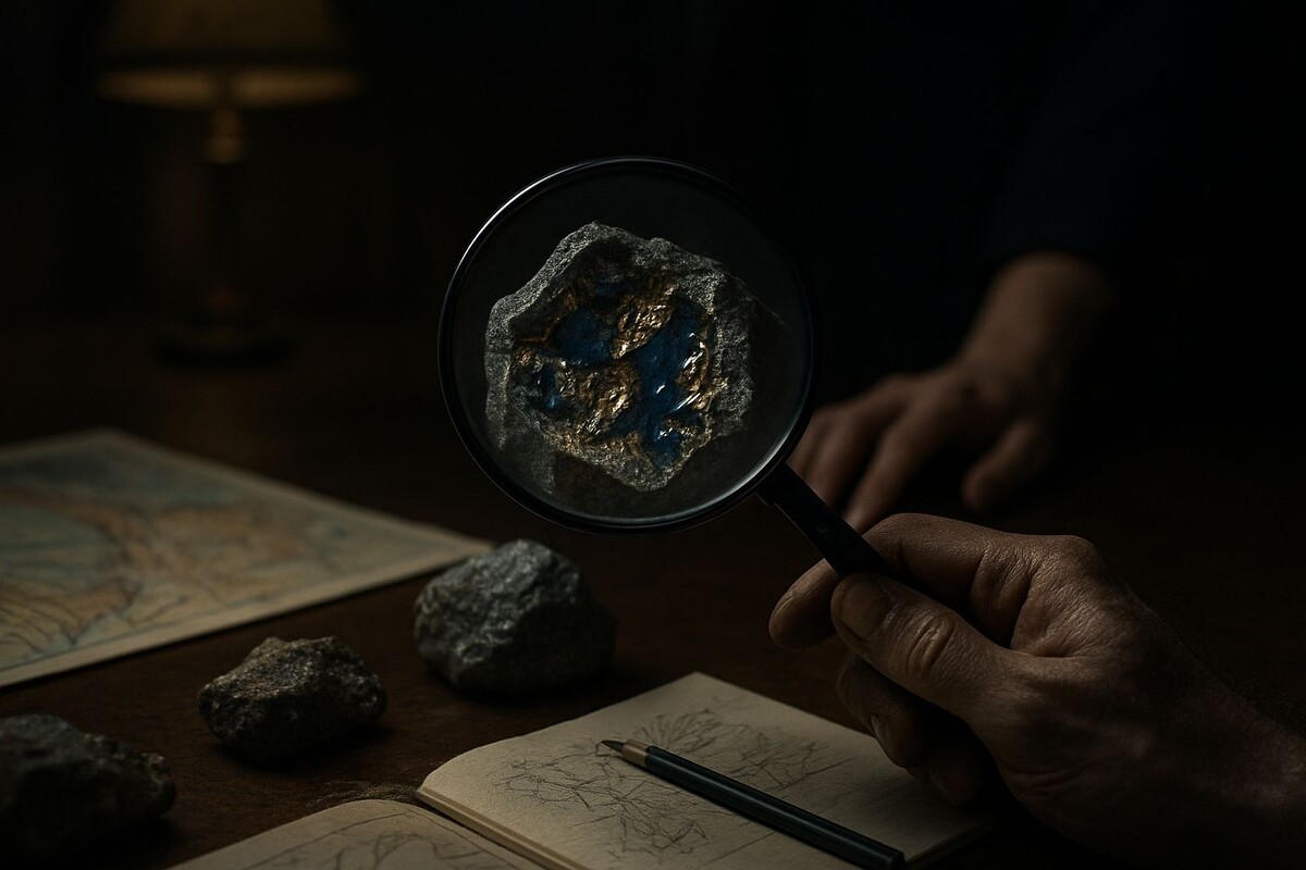 Недомолвки висели в воздухе, как пыль после встряхнутого ковра. На следующее утро, перед уходом в институт для первичных отчётов, я подошёл к коллекции. Рука потянулась к стромейериту автоматически, чтобы ощутить его холодную, неровную поверхность. И тогда я почувствовал разницу. Вес. Он был чуть легче. Абсолютно та же форма, тот же цвет породы, даже похожая трещина. Но внутри – не золотисто-чёрный кристалл с синевой, а тусклый, обычный кусочек чего-то, похожий на шлак. Мозг отказывался верить. Я схватил лупу. Под десятикратным увеличением обман стал очевиден: это была искусная, но всё же подделка. Хорошо обработанная галька, вклеенная в полость. В животе всё похолодело и опустилось.