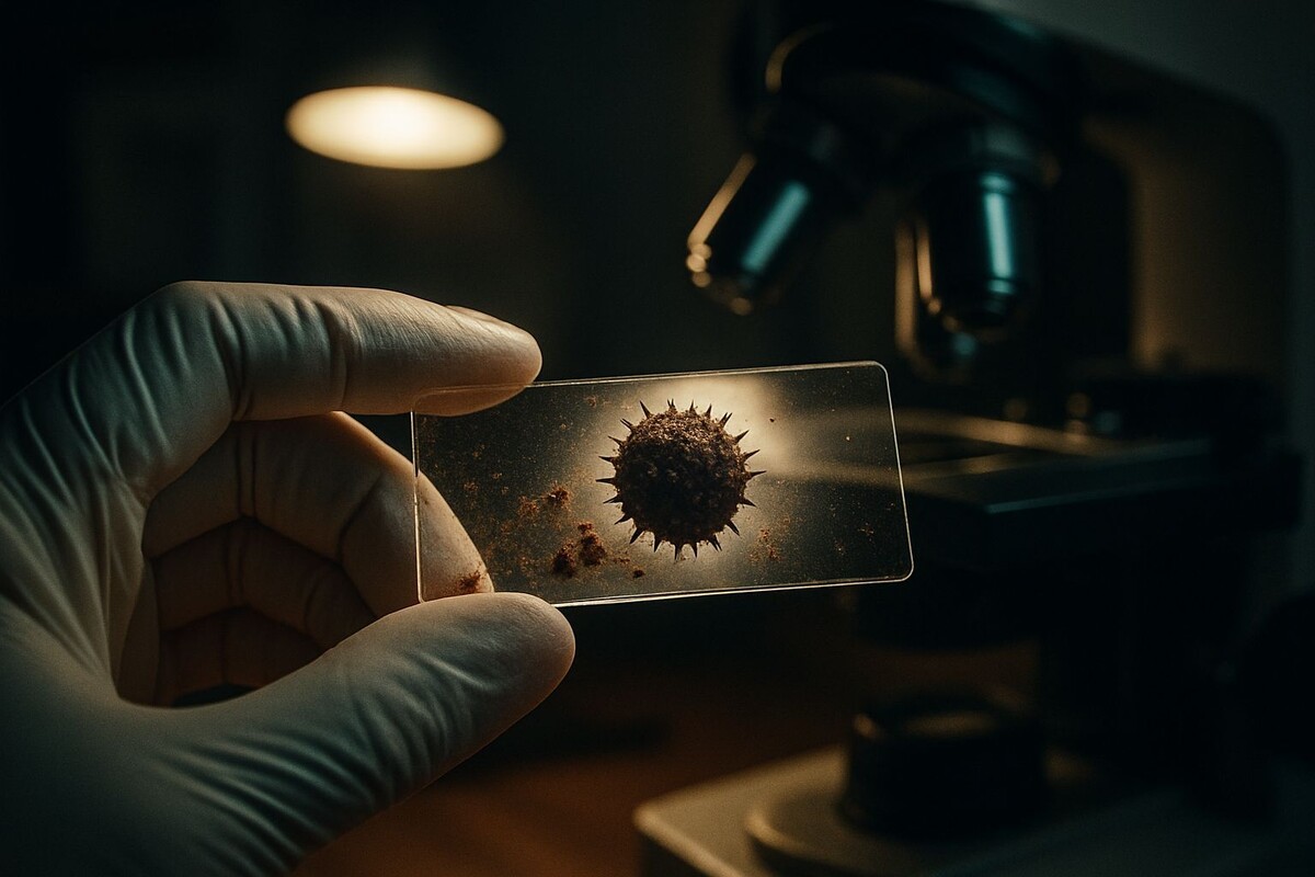 Сначала я увидел привычную картину: песчинки кварца, похожие на кристаллические скалы, темные комочки гумуса, нити гифов обычных почвенных грибов. Я уже собирался отодвинуть препарат, как взгляд зацепился за странную структуру. Идеально круглая, с шиповатой оболочкой, словно крошечный морской ёж. Сердце екнуло с профессиональным интересом. Я увеличил magnification.