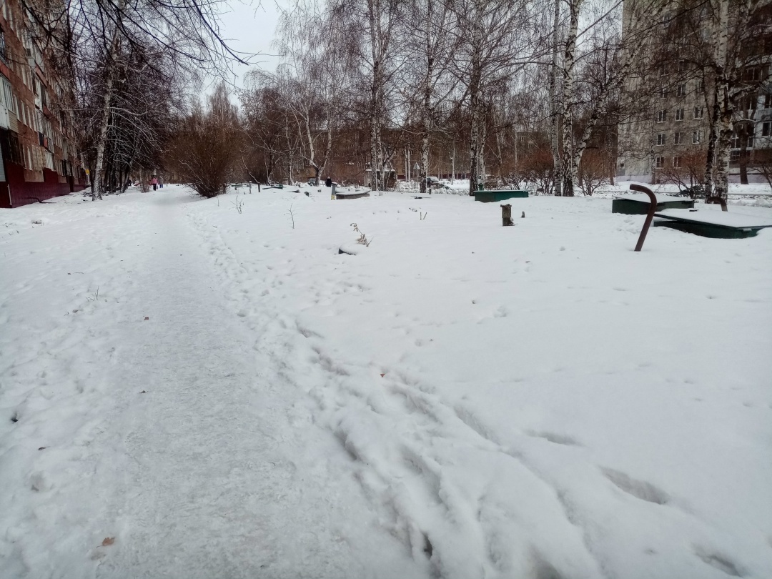 По виду, как будто, зима. По началу, идешь, морозно, воздуха не хватает. А потом привыкаешь, так возвращаясь с прогулки, подходя обратно к своему дому, даже снял перчатки.