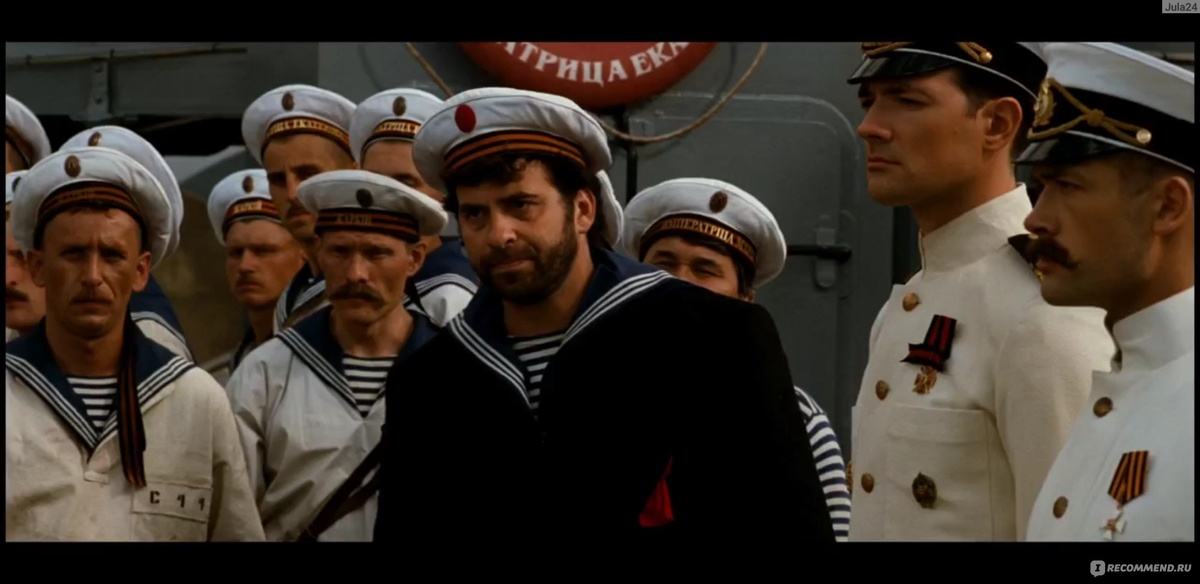 В фильме “Адмиралъ” есть два характерных эпизода. Первый… Уже случились события в Кронштадте (когда весь офицерский состав просто подвели к обрыву и расстреливали, как в тире). Колчак - командующий Черноморским флотом. Те же “брожения” начинаются и в Севастополе. Нам показывают агитатора-морячка “из новых”. И тут на лестнице появляется Он! Толпа поднимает Колчака на руки. Подносит к агитатору, чье слово, хоть и соблазнительное для толпы, но еще не имеет той силы, которую оно очень скоро приобретет.