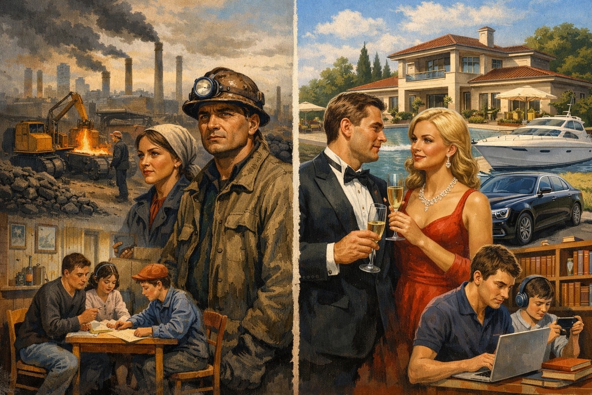 Для богатых — премиальные авто, недвижимость за рубежом, образование детей в Европе/Америке, дорогая медицина. Для бедных — кредиты на базовые потребности, «затягивание поясов», отложенная медицина, ограниченные возможности для детей.