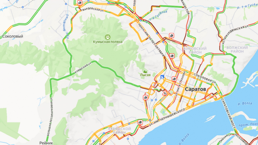 Сегодняшнее утро жители Саратова встретили в 10-балльных пробках. Такую оценку дорожной ситуации дал сервис «Яндекс Карты». Большие заторы образовались на основных дорогах: улицах Чернышевского, Орджоникидзе, Чапаева, Рахова, Астраханская, Мичурина, Тархова, академика Антонова, проспектах Энтузиастов, 50 лет Октября и других. На некоторых участках ситуация осложняется ДТП. Отметим, в ночь на 12 января в Саратове шел снег. Администрация Саратова призывала водителей оставить личные машины на парковках.