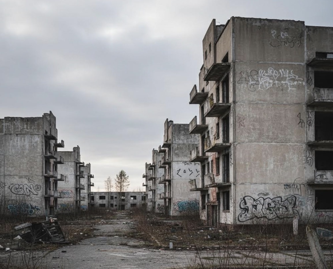 Город опустел практически мгновенно. Из-за сурового климата и отсутствия центрального отопления здания начали разрушаться на глазах. Сегодня это скелеты пятиэтажек, в квартирах которых до сих пор можно встретить брошенные детские игрушки, книги и мебель. Это наглядная иллюстрация того, как хрупка жизнь человека на Севере без поддержки государства.