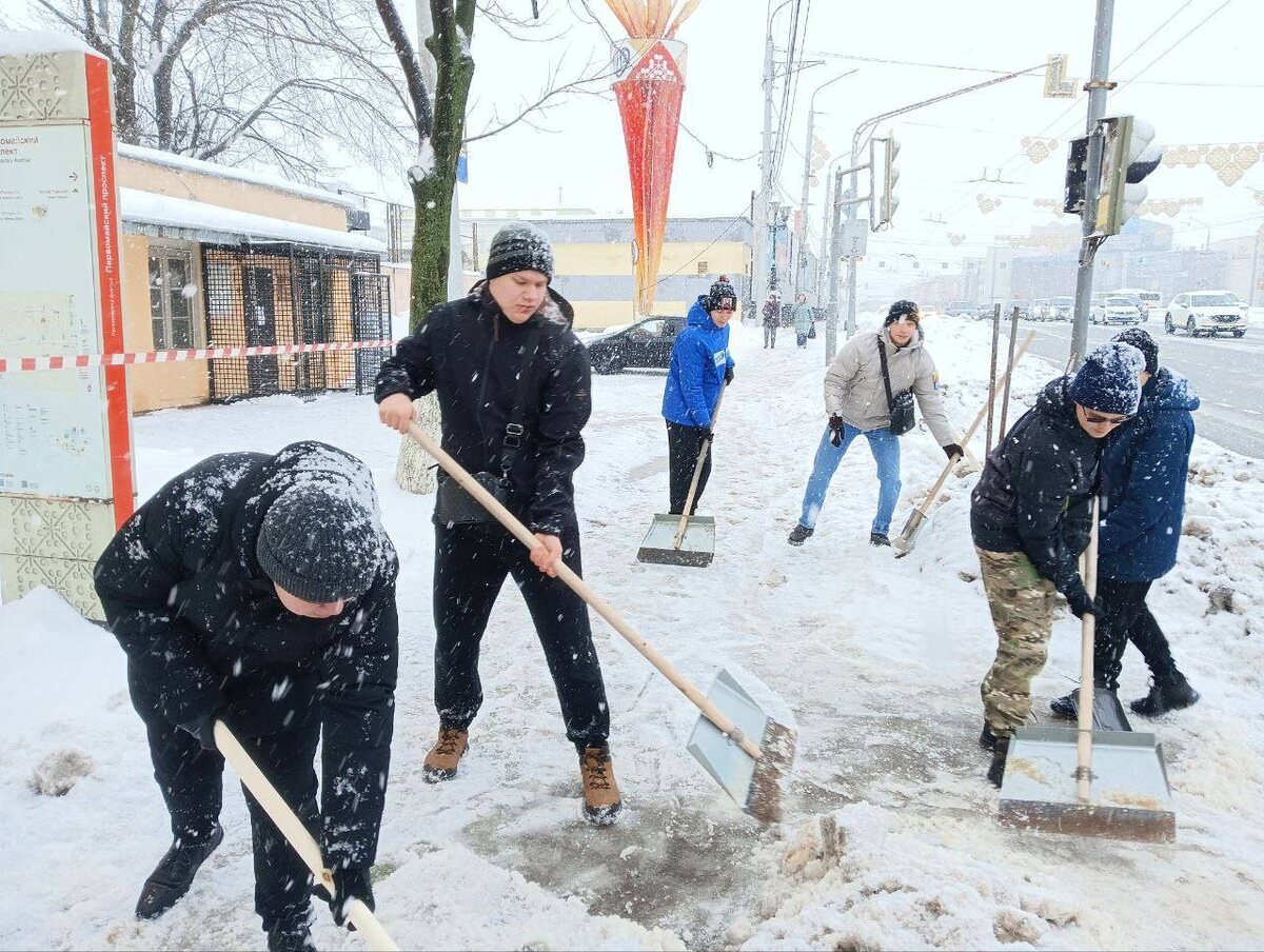 Рязанские молодогвардейцы провели уборку тротуаров и общественных пространств после сильных снегопадов