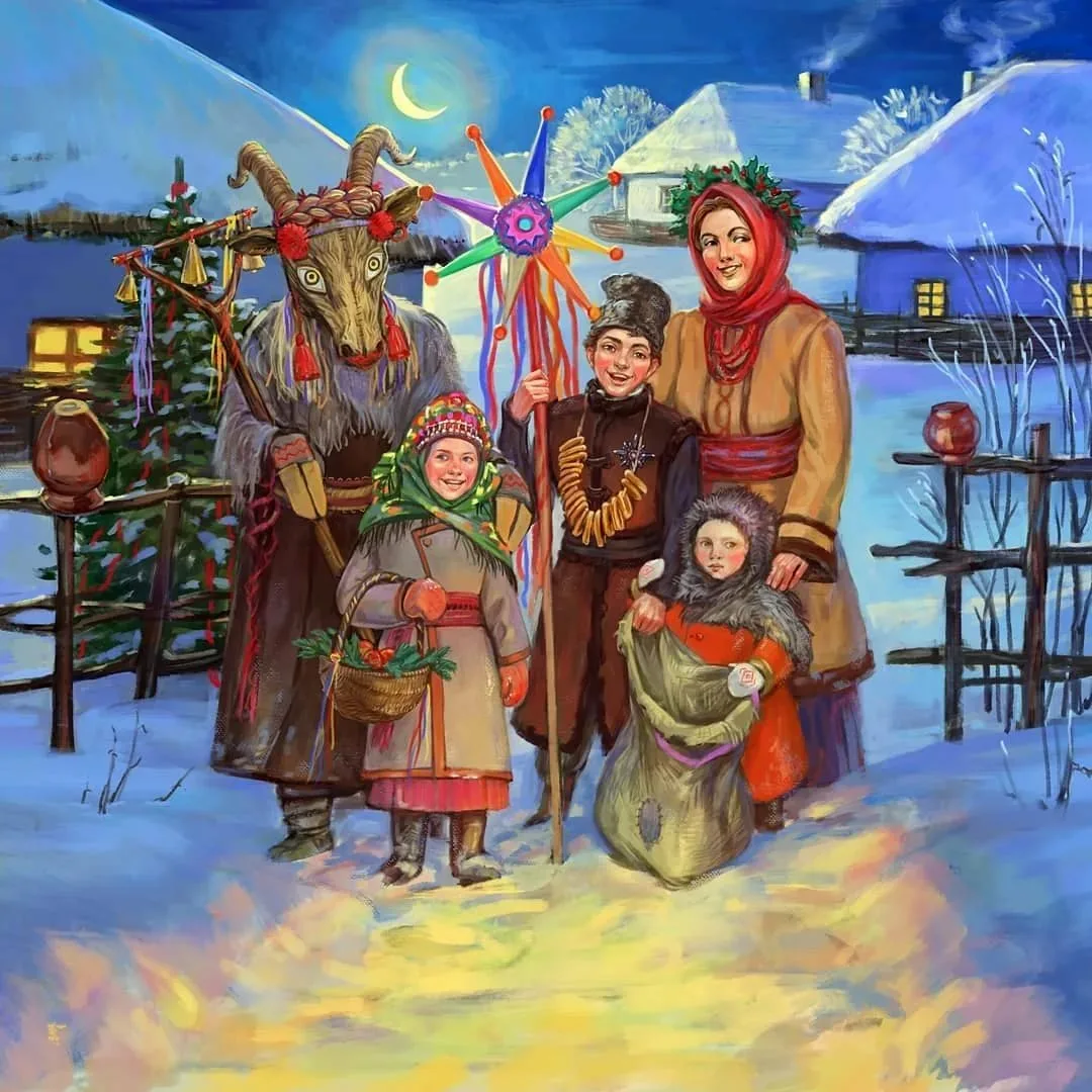 Но за стол так просто не садились - сначала игры, колядки, песни и гадания. Под стук ложек и трещеток, под звон колокольчиков и хлопанье в ладоши пели щедровальные песни - щедровки.