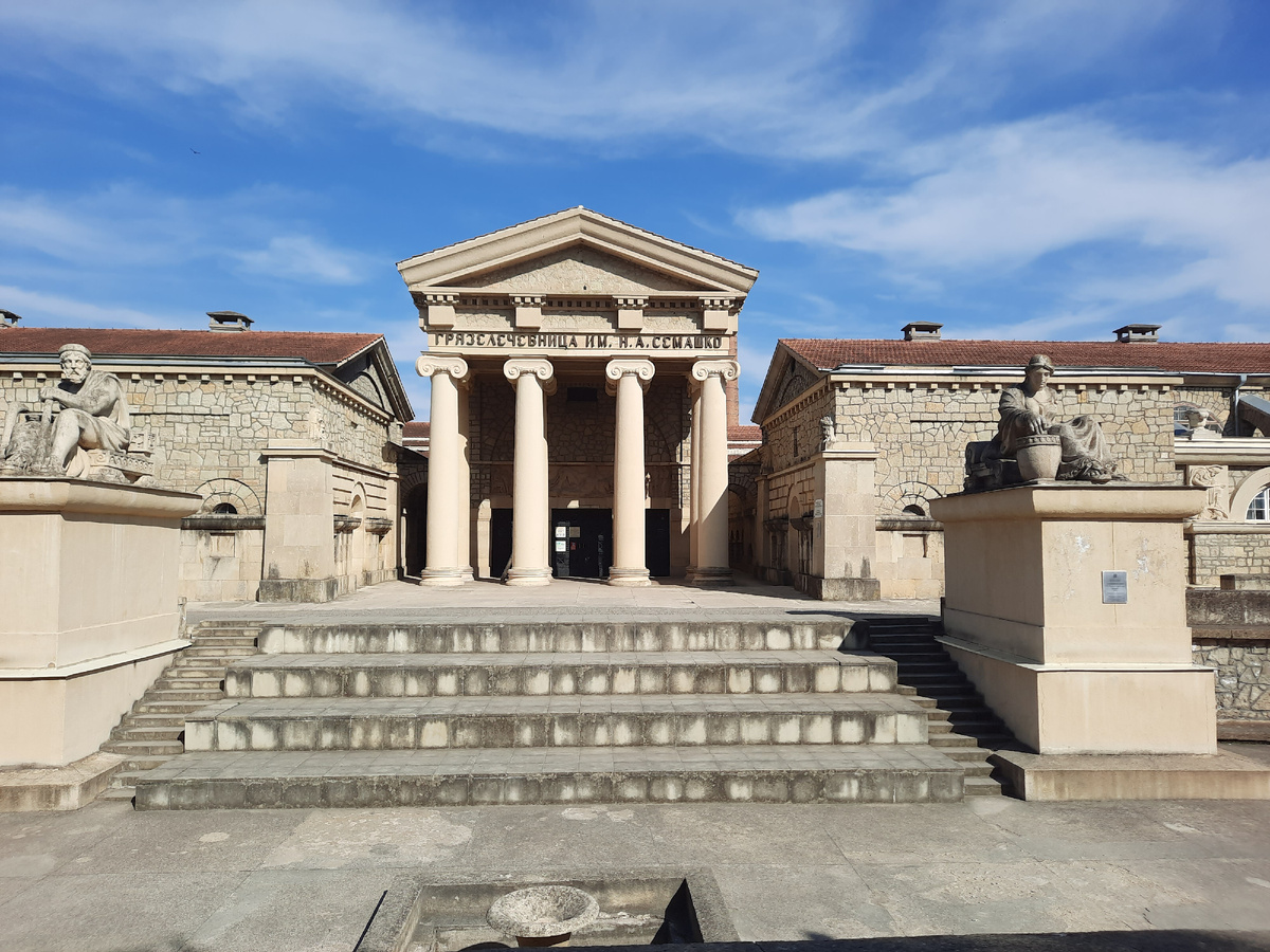 Если бы в Ессентуках нужно было выбрать одно здание, которое олицетворяет всё величие Кавказских Минеральных Вод, это, безусловно, была бы Грязелечебница имени Н.А. Семашко. Когда подходишь к её монументальному фасаду, кажется, что ты совершил скачок во времени и пространстве — из Ставропольского края прямиком в Древний Рим или Грецию. Архитектурный шедевр: Львы, боги и вечность Здание было построено в 1915 году по проекту архитектора Евгения Шреттера. Изначально она называлась Алексеевской (в честь наследника престола), и её возведение стало настоящим триумфом инженерной и художественной мысли. Львы у входа: Главные стражи лечебницы, которые прижимают лапами змей. Это символ победы здоровья над болезнями. Сделать фото между этими львами — обязательный пункт программы каждого туриста. Стиль: Здание спроектировано в духе древнеримских терм. Величественные колонны, барельефы с изображением античных героев и богов медицины — Эскулапа и Гигиеи — создают атмосферу спокойствия и торжественно