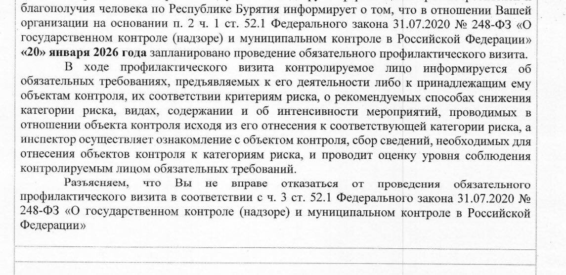 Первый рабочий день года в РФ, начался с сообщения от Роспотребнадзора о проверке