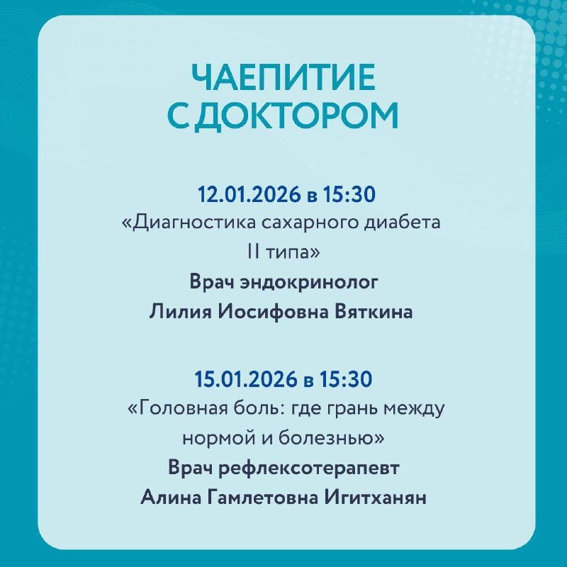 Мы приглашаем вас на открытые встречи с доктором в кофейне Пушкин. Вы сможете: • задать вопросы специалисту; • обсудить актуальные темы; • получить практичные рекомендации. 📍 ул. Калинина, 23 Вход свободный. Ждём вас ☕️