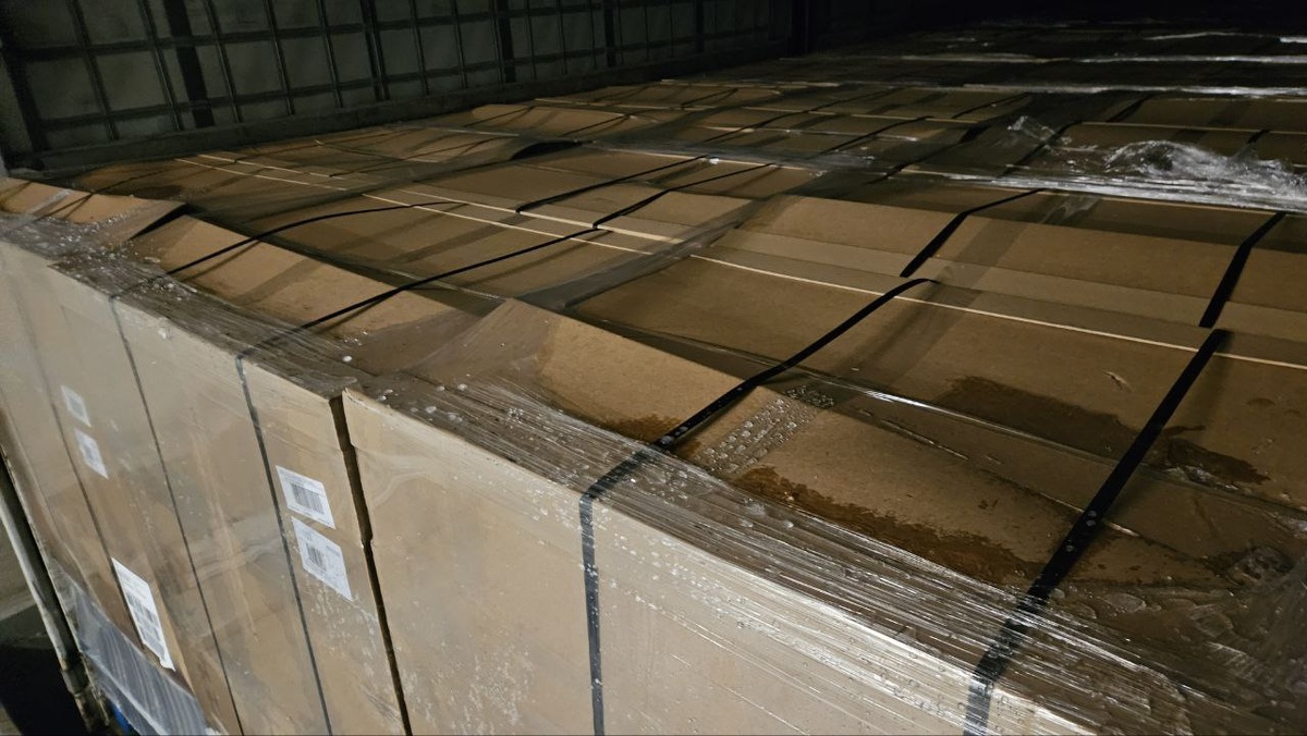 Из-за того, что порван уплотнитель двери, крайние коробки мокрые. И одна коробкa порвана. Швейцарец сказал No Problem. Потом очищал крышу от снега. #abladen #swiss #aldi
