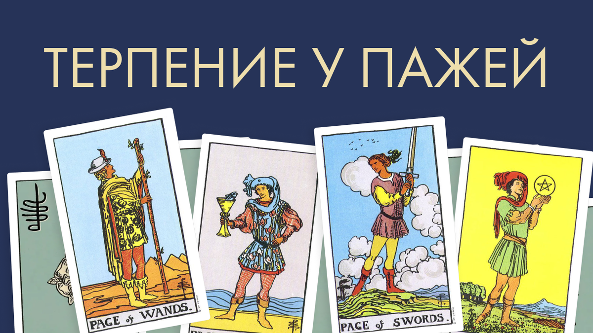Если в раскладе выпадает Паж как сигнификатор человека и его черт характера, мы должны учитывать все тонкости и нюансы его поведения. Одна из ключевых характеристик, на которую стоит обратить внимание, — это терпение. Как человек умеет ждать? Как он справляется с тревогой, вызванной неопределённостью? Чтобы понять уровень терпения Пажа, достаточно взглянуть на простую формулу — взаимодействие стихий. Пажи принадлежат к миру Земли, но каждый из них несёт стихию своей масти (Огонь, Вода, Воздух или Земля). Поэтому важно учитывать, как стихия конкретного Пажа проявляется в мире Земли, и понимать, что этот мир собой представляет. Мир Земли — это пространство физическое, плотное, тяжёлое и инертное. 🔥 Паж Жезлов (Огонь) Огонь — стихия стремительная и нетерпеливая. Он мгновенно сжигает топливо и бурно реагирует на малейшие раздражители. Терпения у Пажа Жезлов немного: он хочет всё и сразу, жадно хватает возможности, но так же быстро теряет интерес, сжигает ресурсы, ломает и оставляет позади