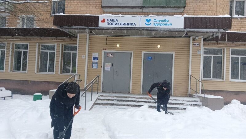 Студенты Серпуховского колледжа убрали снег около медучреждений