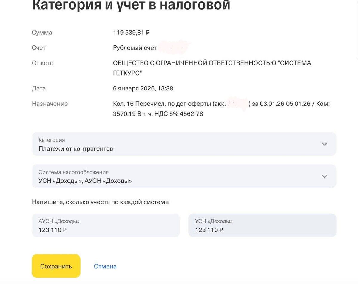 😆. Ржали 5 минут, а потом поняли, какую головную боль нам теперь разгребать.⠀ ⠀ Смотрите скрины. ⠀ ⠀ 1️⃣ В ЛК АУСН уже есть данные о продажах за выходные.⠀ ⠀ 2️⃣ Данные о налоговой базе - кривые. В методичке налоговой все красиво, комиссия эквайринга должна прибавляться к сумме поступления на счет. На деле так не работает.⠀ ⠀ 3️⃣ Чтобы исправить операцию, нужно перейти в сервис банка, с ЛК править не дает.⠀ ⠀ 4️⃣ Правишь операцию в банке, сохраняешь, закрываешь, снова заходишь - а операция не исправилась😆.⠀ ⠀ 5️⃣ В случае, который на скринах, все еще сложнее - там в эквайринге и счетах выставлен НДС (этот тот самый случай, писали ранее).⠀ ⠀ И банк работает по такой формуле:⠀ ⠀ «Приход на счет минус НДС, указанный в назначении»⠀ ⠀ На комиссию вообще сервис не реагирует и не обращает внимание.⠀ ⠀ В общем, бухгалтеры, которых еще не уволили, ловите инструкцию, что с этим делать:⠀ ⠀ 1️⃣ Ждать, когда-то они все - и банк, и ЛК, найдут и исправят