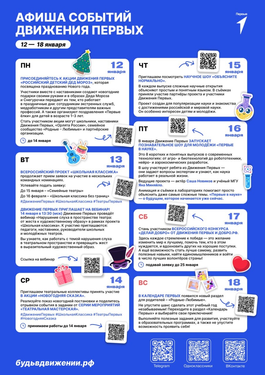 Афиша событий Движения Первых на первую рабочую неделю после новогодних праздников