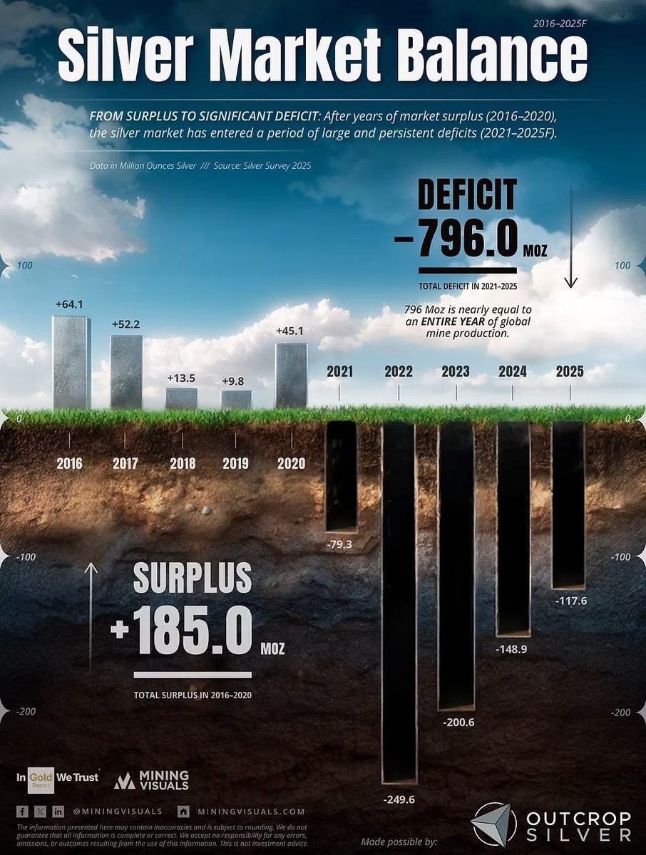 Рынок серебра сейчас находится в центре внимания: в начале октября 2025 года цена на металл торгуется выше отметки $48 за унцию. Такое ценовое движение происходит на фоне долгосрочной фундаментальной тенденции - растущего дефицита предложения. Как показано на прилагаемом графике, рынок уже пятый год подряд испытывает структурный дефицит, при котором спрос превышает предложение. Согласно Всемирному обзору серебра за 2025 год, совокупный дефицит предложения в период с 2021 года по конец прогнозного горизонта 2025 года составит 796 миллионов унций (млн унций). Эта цифра почти эквивалентна годовому объему мировой добычи серебра. Основные причины продолжающегося дефицита и факторы, влияющие на цену следующие: 1. Промышленный спрос Главным драйвером укрепления рынка серебра является его незаменимая роль в производстве. Промышленный спрос на серебро в 2024 году достиг нового исторического максимума. Этот спрос в первую очередь обусловлен: - Фотоэлектрикой (солнечной энергетикой): солнеч