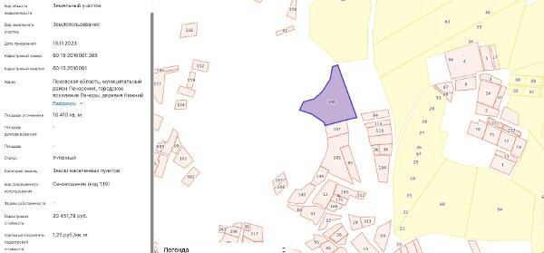 Название: Земельный участок с КН 60:15:2016001:306, площадью 16410 кв.м, с местоположением: Псковская область, Печорский муниципальный