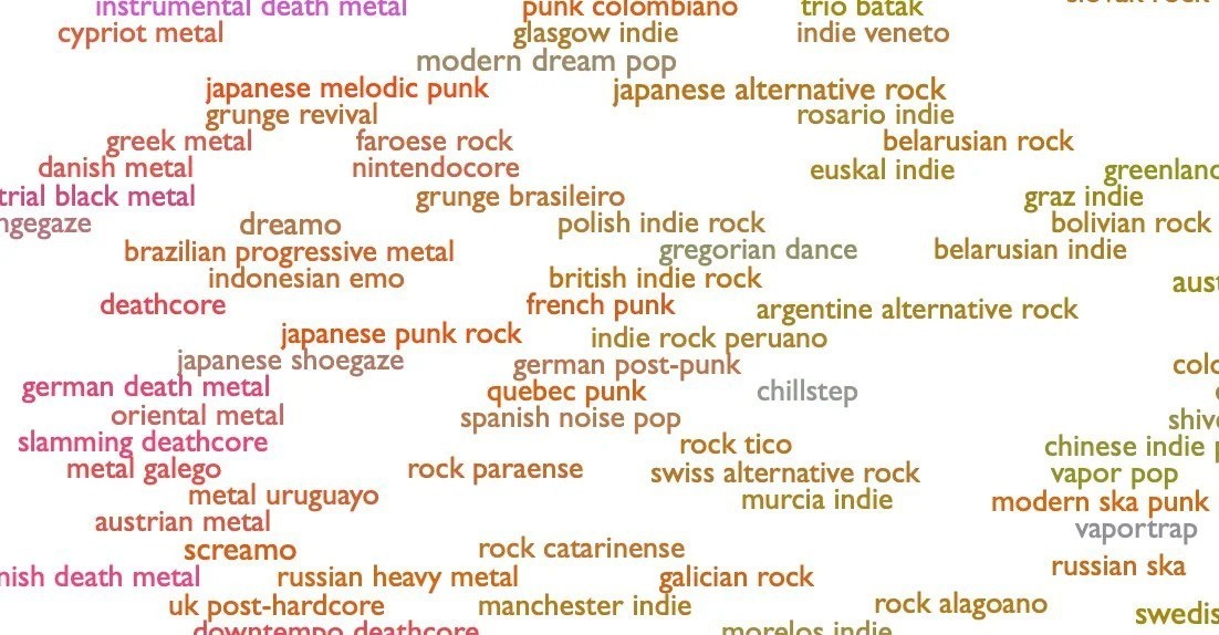 🎧 Every Noise at Once – это интерактивная, динамическая карта музыкальных жанров, основанная на данных Spotify, которая визуализирует тысячи жанров как точки на диаграмме Карта позволяет пользователям исследовать и открывать для себя новые стили, слушать примеры и создавать плейлисты, представляя собой огромную вселенную звуков для меломанов