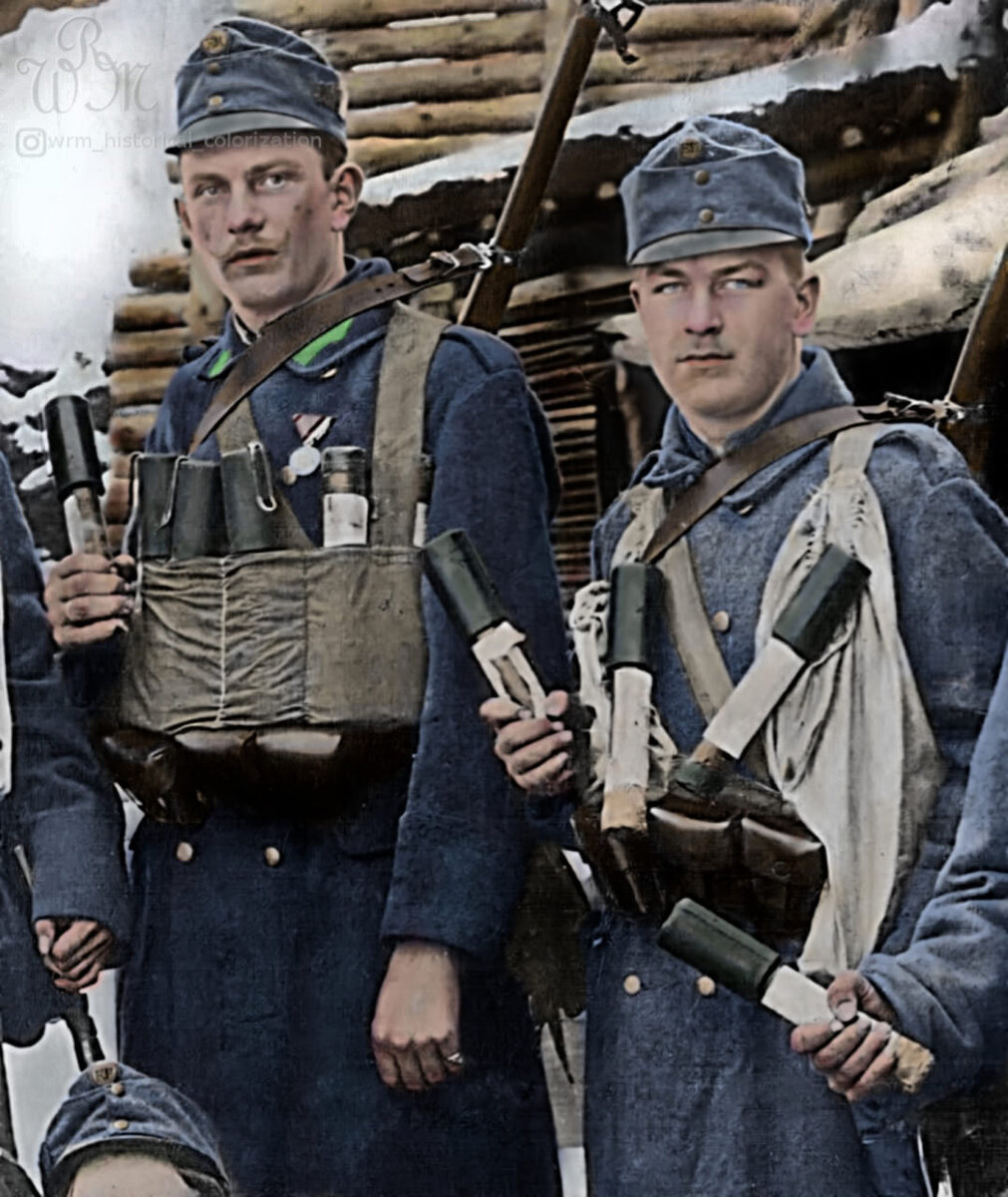 Австро-венгерские солдаты, вооруженные ручными гранатами, зима 1915 года