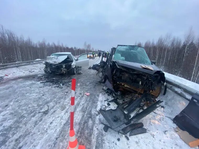 Днем 11 января на региональной автотрассе Аромашево - Вагай произошло смертельное ДТП. Автомобиль Toyota врезался в дорожное ограждение, вылетел на встречную полосу и столкнулся с Nissan.